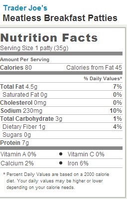 Trader Joe’s Meatless Breakfast Patties – Nutrition Facts