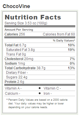 *The Nutrition Facts below are based on website data only. There is no nutrition information posted on the bottle so, you know, be a little dubious.
