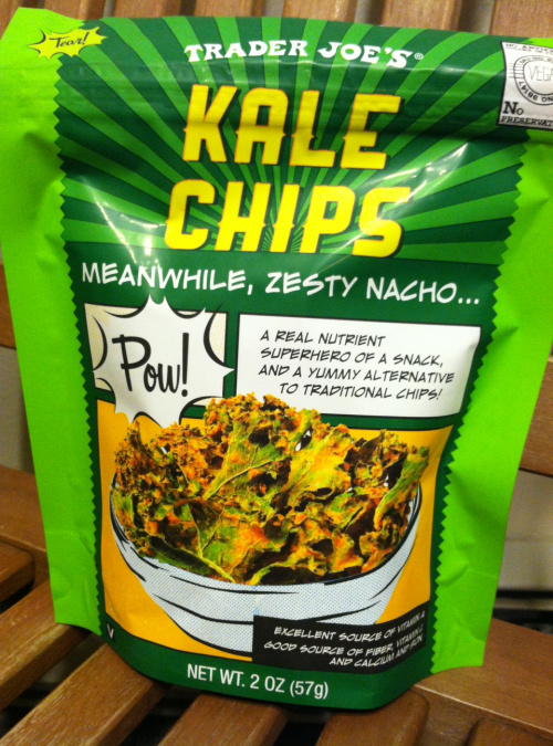 Posted: November 10, 2012 Filed under: Chips, Kale, Snacks, Uncategorized, Vegetables 3 CommentsKale – who really knows anything meaningful about this stuff. I, like most of humanity I suspect, don’t pay much attention to the seemingly countless varieties of leafy green veggies that basically just go on salads. I do know someone who does care though, who cares deeply – Trader Joe’s. These guys push the kale hard – they really believe in kale. Where most retailers in the world might go “Maybe let’s hold back on the kale, I’m not sure this is something the public is really hungry for,” Trader’s Joe’s says, “Screw it – we’re doing kale chips.”