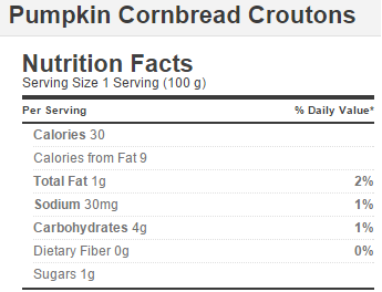 Posted: October 23, 2014 Filed under: Bread, Pumpkin, Trader Joe's Brand | Tags: 3 stars, croutons, pumpkin, Salad, Trader Joe's Brand Leave a commentWith Trader Joe’s Pumpkin Cornbread Croutons we have another strange and daring pumpkin offering. As a salad lover I was quick to pick these up. As any true salad connoisseur knows, the combination of textures in a salad is almost as important as the combination of tastes. The simple addition of a crispy little crunch, whether it be croutons, baco-bits, or a handful of seeds, can elevate a salad from merely good to truly excellent. As such, I’m always on the lookout for a tasty new texture to touch up my tossed salads, and I was both pleased and surprised to see that Trader Joe’s ongoing season of induced Pumpkin Psychosis extended even so far as the world of croutons. What surprised me ever more, however, was that despite having never so much as dreamed of such an outrageous idea as Pumpkin Croutons in all my life, I had actually already made them a week earlier. That said, I did only make them by accident.
