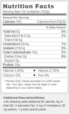 Other qualities that should not go un-touted: the package includes a perfectly proportioned amount of dressing for the quantity of salad, and comes along with the always useful packaged-in fork. Overall it’s the perfect item to take on a picnic, have for lunch at your desk, or compliment your dinner steak.