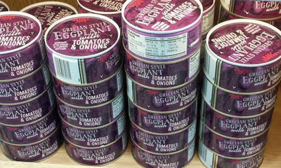 Posted: April 7, 2015 Filed under: Trader Joe's Brand | Tags: 2 stars, eggplant, greek food, onion, tomato, Trader Joe's Brand 18 CommentsI’ll admit it, I find something strangely alluring about tins of food. I can’t really enunciate exactly what it is that draws me to large, sealed metal tins, but whatever it is Trader Joe’s Grecian style Eggplant with Tomatoes and Onions has got it. There’s just something of a mystique to them something, that aura of the unknown that surrounds the Mystery Box, and would lead me to trade it all for what lies behind Door Number Two.
